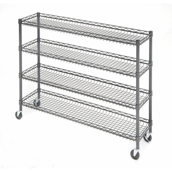 4 Tier Metal Rolling Cart With Wheels With Baskets For Retail Storage